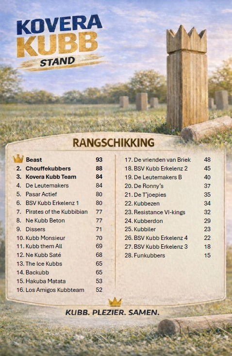 Overzicht van all toernooien die geselecteerd werden voor de Kovera Kubb League 2026.